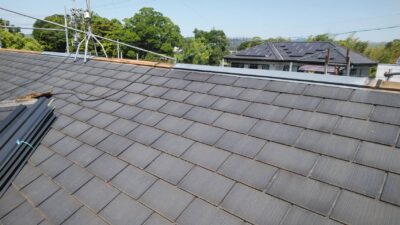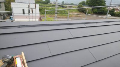 今度の屋根材はメーカーが25年の保証を付けている高寿命の物なので、当分ノーメンテで安心していただけると思いますが、台風や雹に被災された場合には見えない箇所なので点検依頼いただければ無料で点検するので、お気軽にお声掛け下さい。