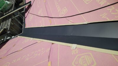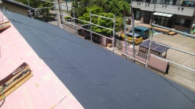 その次はルーフィング(防水シート)水下から順番に貼って行きます。
