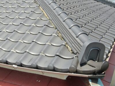 しかし面土に詰めてある漆喰は飛び出していて、瓦の中に敷いてある防水シートのルーフィングが破れれば雨漏りが始まるし、何より小さい地震や、台風などの強風が吹いた時には下に落下の恐れが有り、非常に危険です。