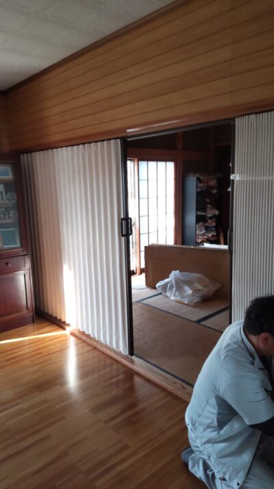 静岡県藤枝市で間仕切りをカーテンからアコーディオンカーテンに室内改修工事でお世話になりました。
