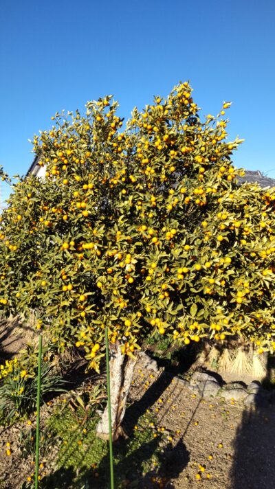 帰り際に畑の方を見ると立派なキンカンの木があったのでお断りをして写真を撮らせて頂きました。好きなだけ取ってきなという事で数個を頂いて帰りましたがこの時期体調を崩したり喉にダメージを受けるので大変ありがたく頂きました。