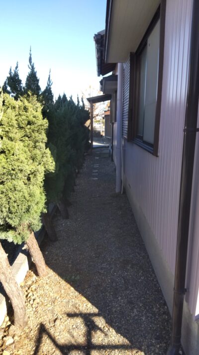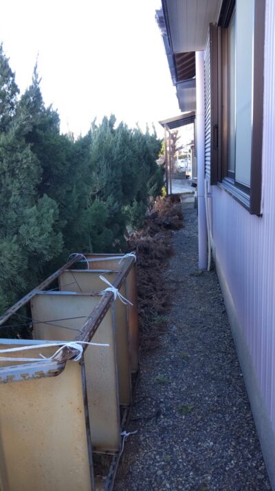 当初2日程の工程を見ていましたが前日迄に片付いた現場があり2班で入り1日で完工致しました。作業前と比べかなり綺麗に片付いたと思いますがこの後庭木の剪定を予定しております。