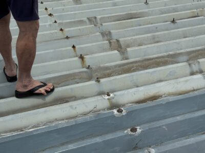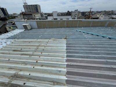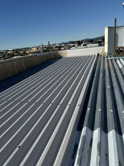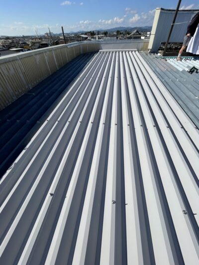 静岡県焼津市で雨漏りの為、総3階の折半屋根カバー工事
