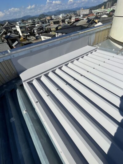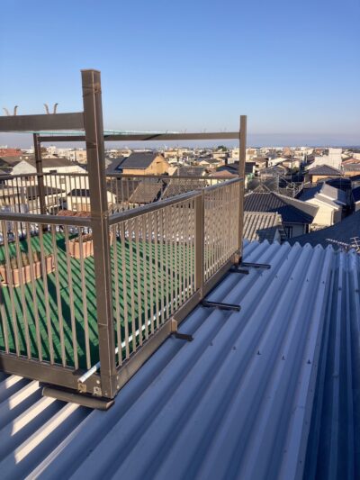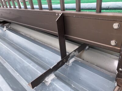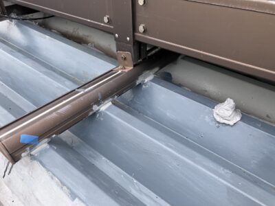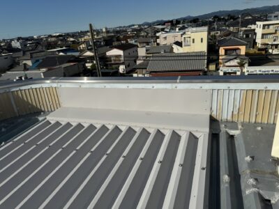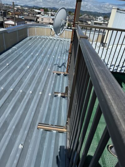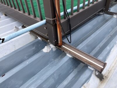 水が流れ始める水上部の笠木下まで屋根材を入れ込み、これで元ベランダがあった箇所の錆びていた箇所へは雨水が流れこまないようになり雨漏りの心配が無くなりました。