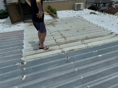 ベランダがない時しか出来ない屋根を重ね葺きする事となりました。