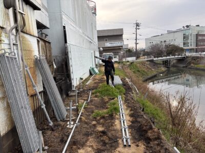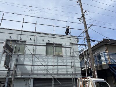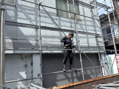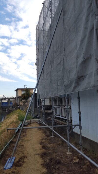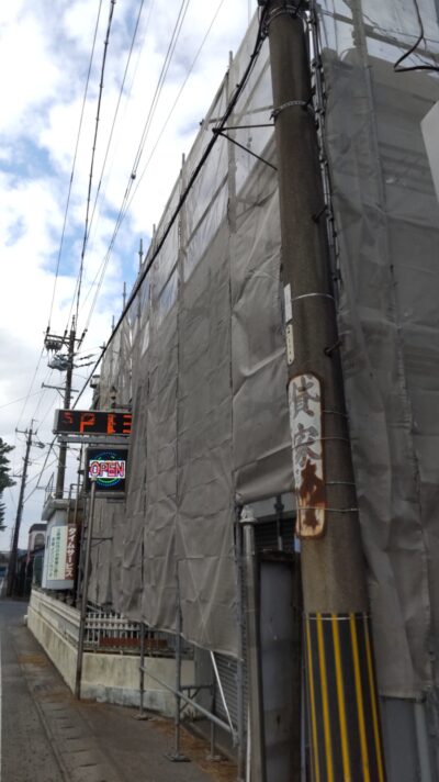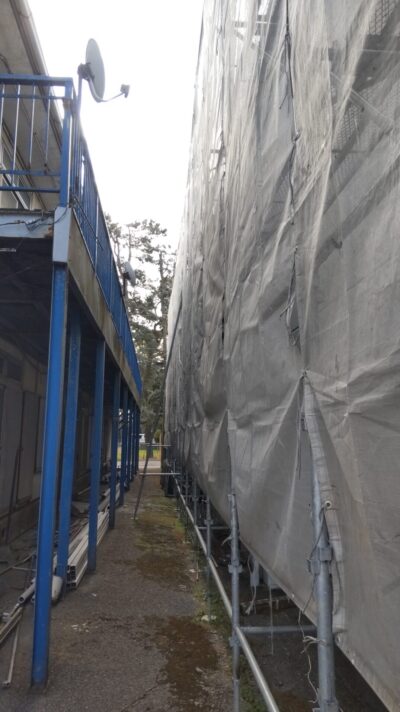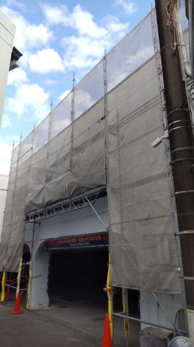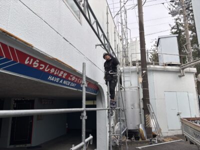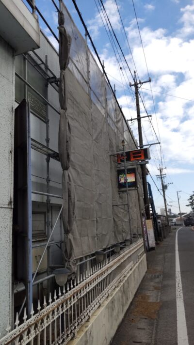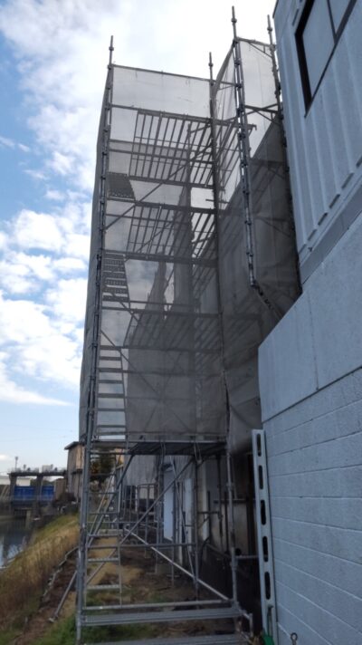 静岡県焼津市でホテル改修工事の仮設足場を設置しました。