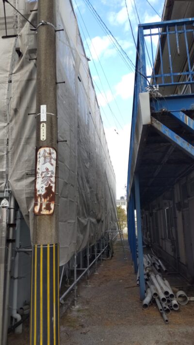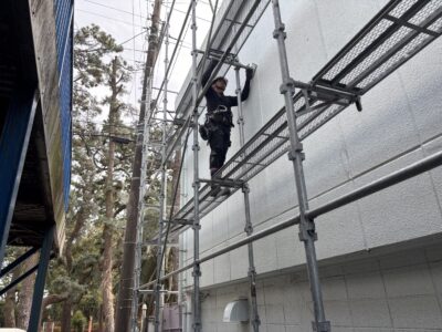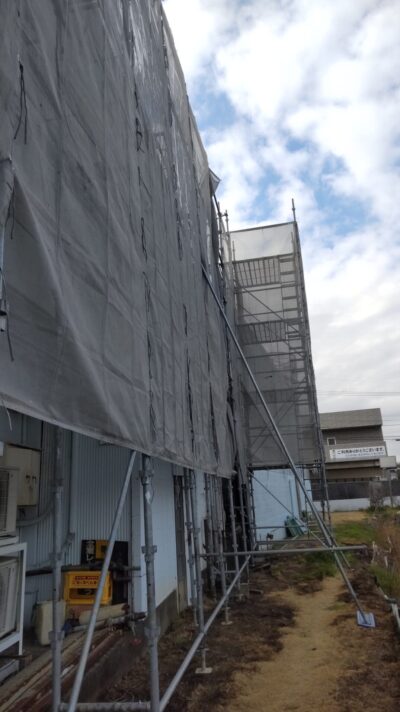 工事は足場掛けからスタートし2日の予定で足場を掛け一次工事は1ヶ月程の工期を予定しています。