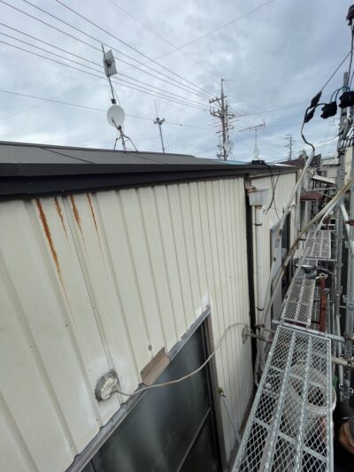 この後足場をバラさずに何度か強い大雨を経験していただき、雨漏りが治ったのを確認してから足場を解体して施工完了です。