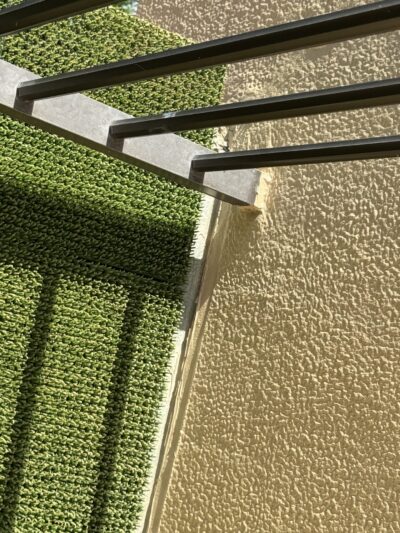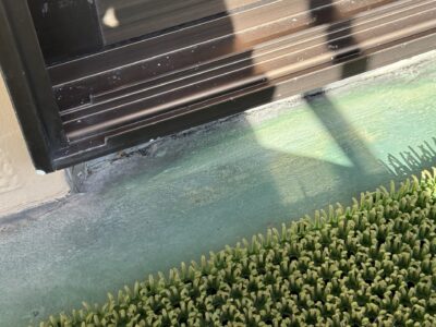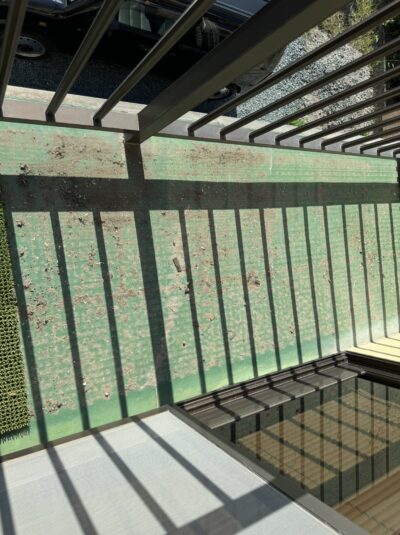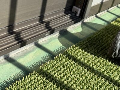 ベランダには人口芝生が敷いてましたが剥がすと防水層の劣化とヒビ割れが有り、新規防水施工する事となりました。