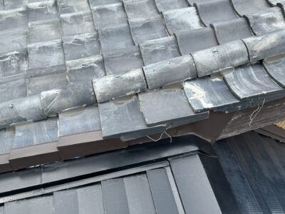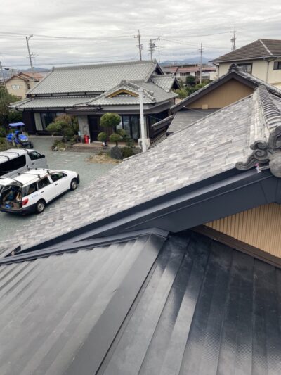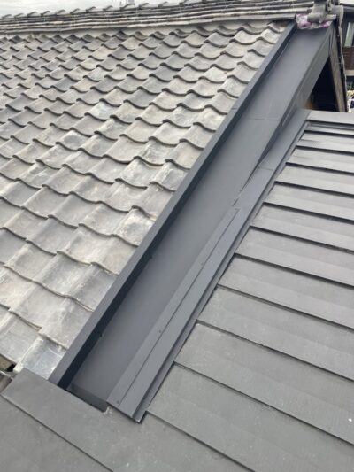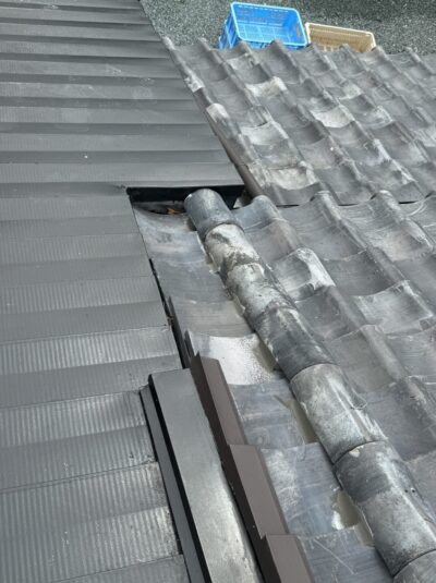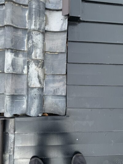 静岡県藤枝市で瓦屋根とガルバリウム屋根の取り合い部からの雨漏り補修工事