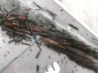 古い棟板金を取り外して内部を確認すると、木製の貫板は湿気の影響でボロボロに腐食していました。