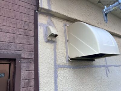 さらに、問題となっていたアングルについては、笠木の上ではなく側面へと取り付け位置を変更。ビス穴からの雨水侵入を防ぐ構造へと改善しました。あわせて、外壁面についても劣化が見られたため、必要な範囲で補修および塗装を行い、外観と耐久性の向上を図りました。