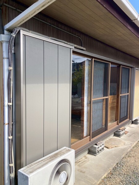 まず、動きが悪くなっていた雨戸は新しいものへ交換しました。長年の使用で歪みが出ていたため開閉が重くなっていましたが、交換後はスムーズに動くようになりました。