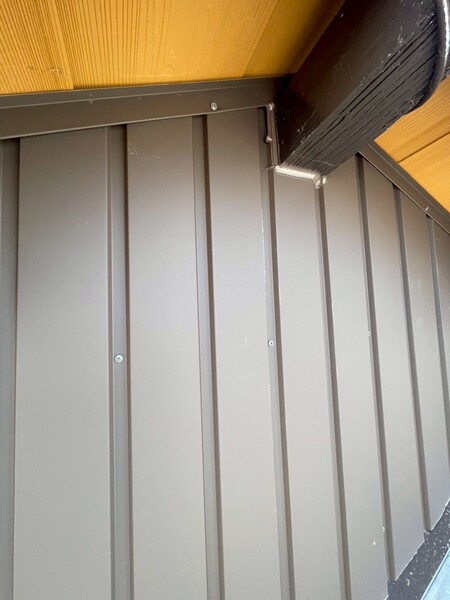 施工後は外観もきれいに整い、お客様にもとても喜んでいただくことができました。建物は場所によって傷み方が異なるため、状態に合わせて施工方法を選ぶことが大切です。今回は板金施工と塗装、部分補修を組み合わせることで、建物全体の耐久性を整えることができました。