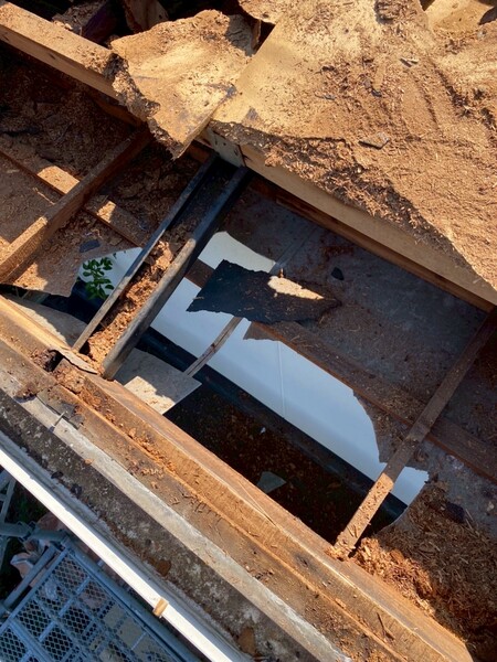屋根材を撤去し、内部の状態を確認したところ、表面からは分かりにくい部分まで劣化が進行していました。