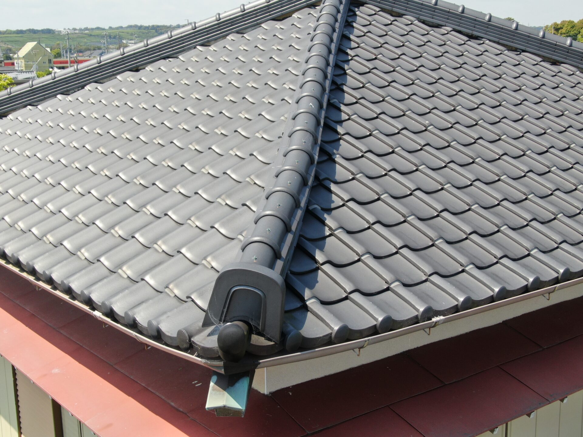 静岡県牧之原市で、瓦屋根の5段棟のズレと漆喰劣化の為、軽量化もかねて乾式棟に取り直し